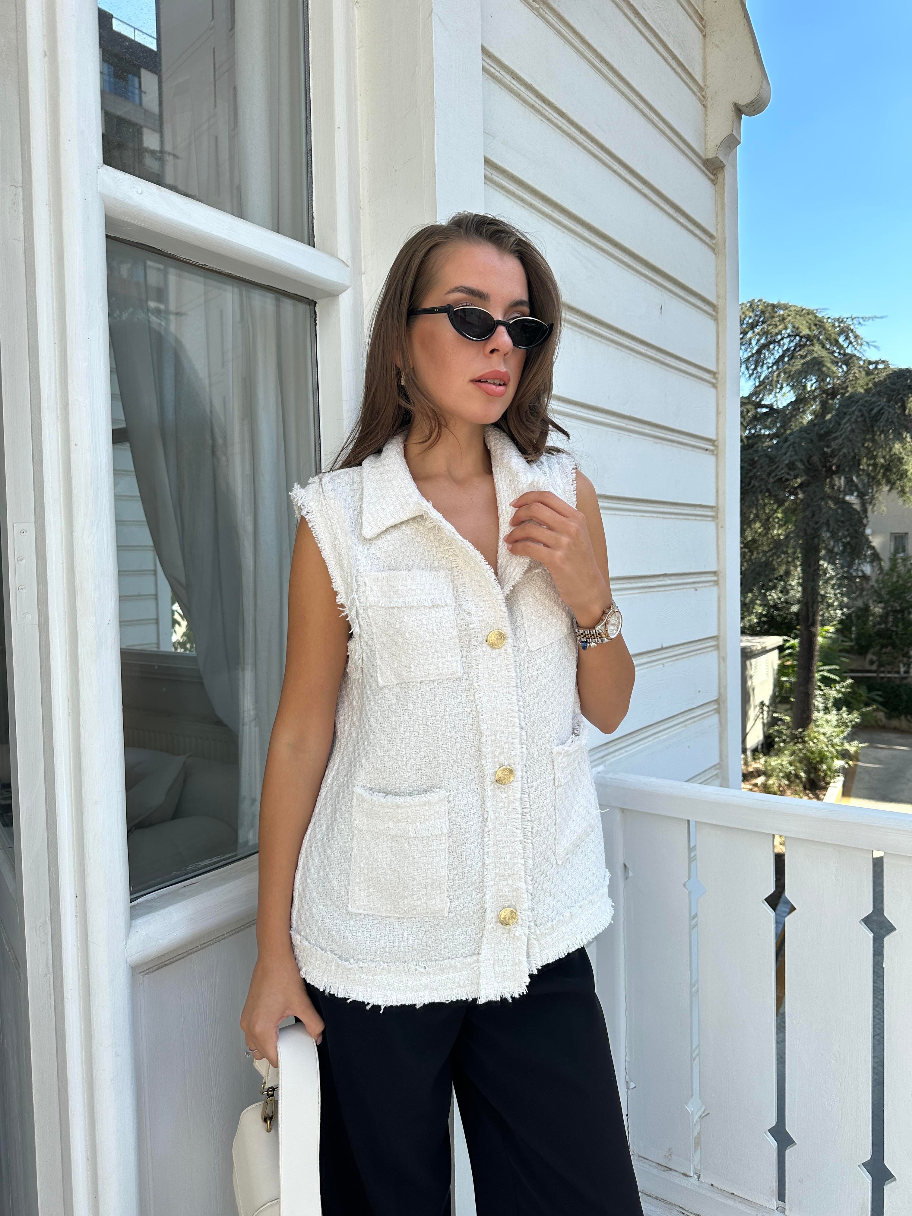 Ekru Tüvit Uzun Yelek (SS23-YLK0000013)