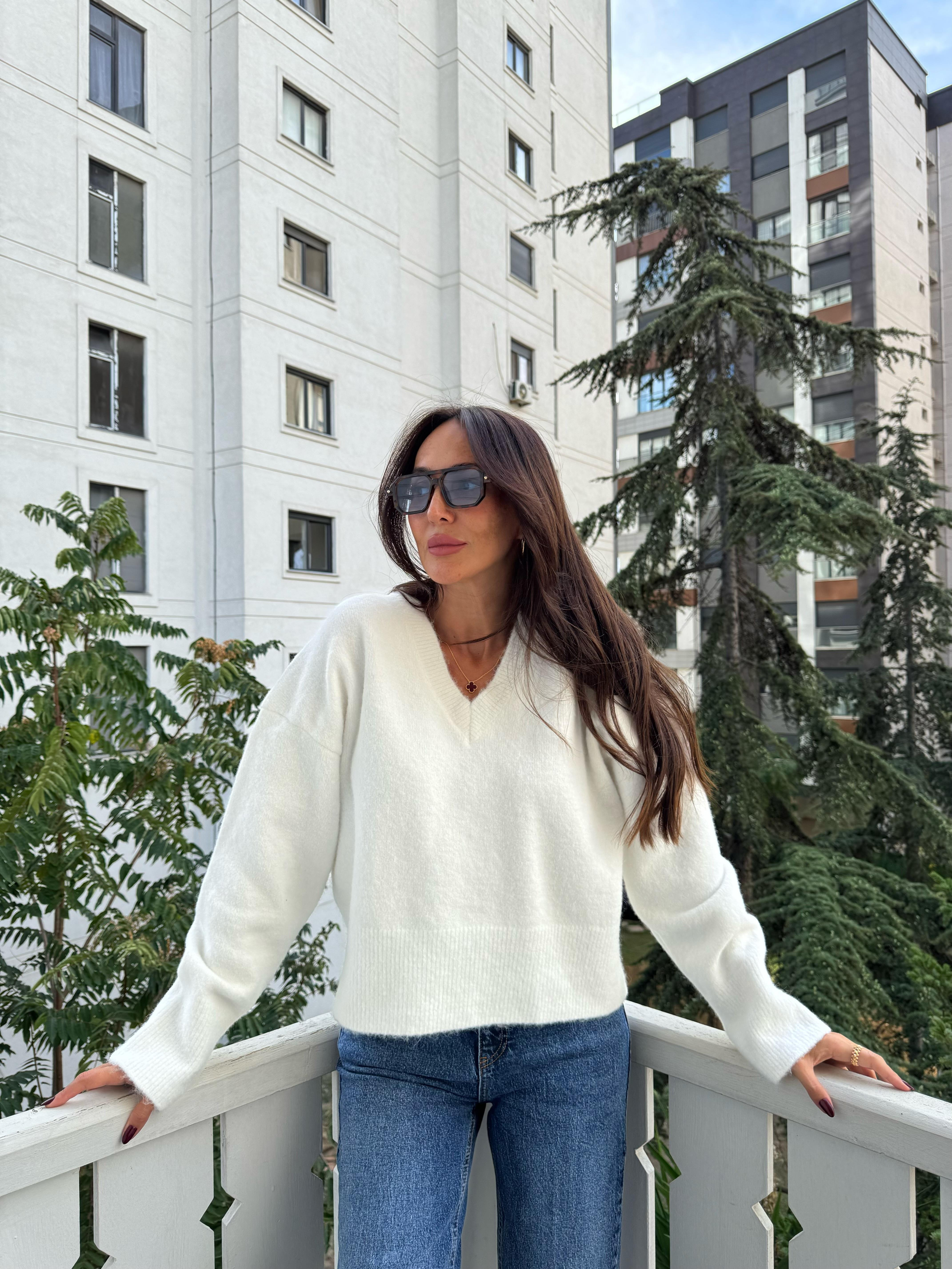 • Ürün Bilgisi: V Yaka Yumuşak Dokulu Triko Kazak