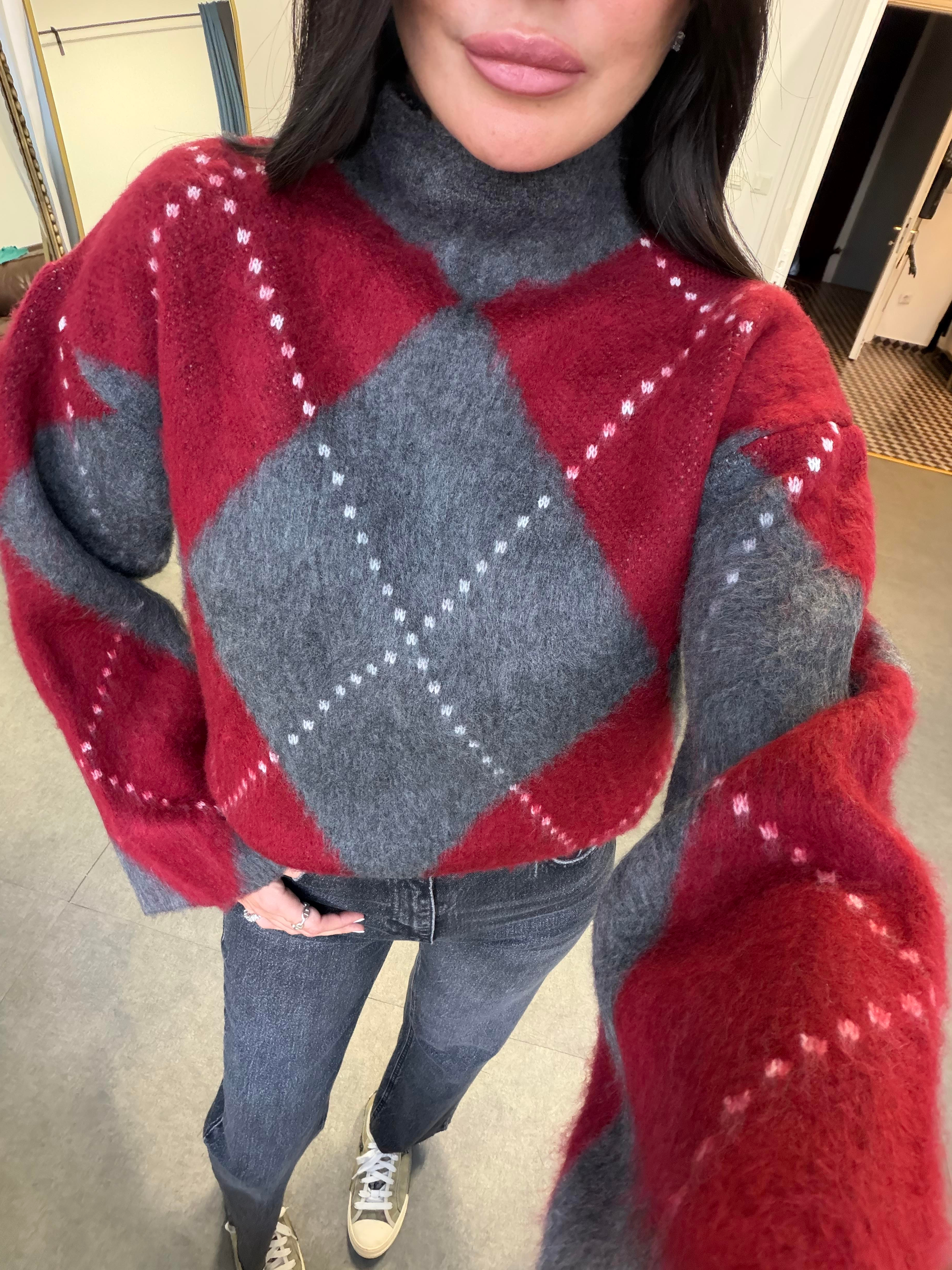 Füme-Bordo Yarım Balıkçı Baklava Desen Kazak (KAZK208)