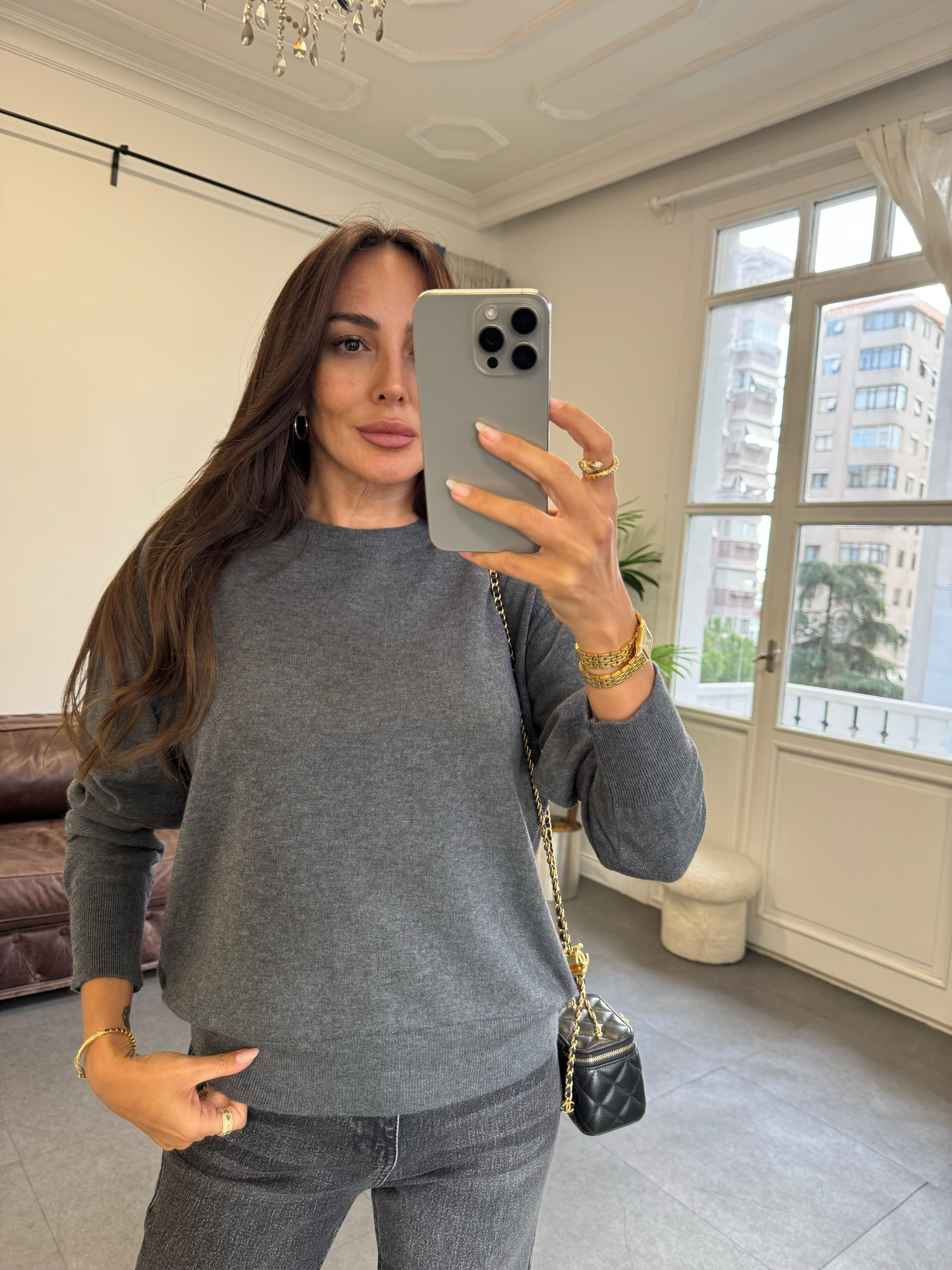 Füme Melanj Bisiklet Yaka Yünlü Basic Triko Kazak (KAZK200)