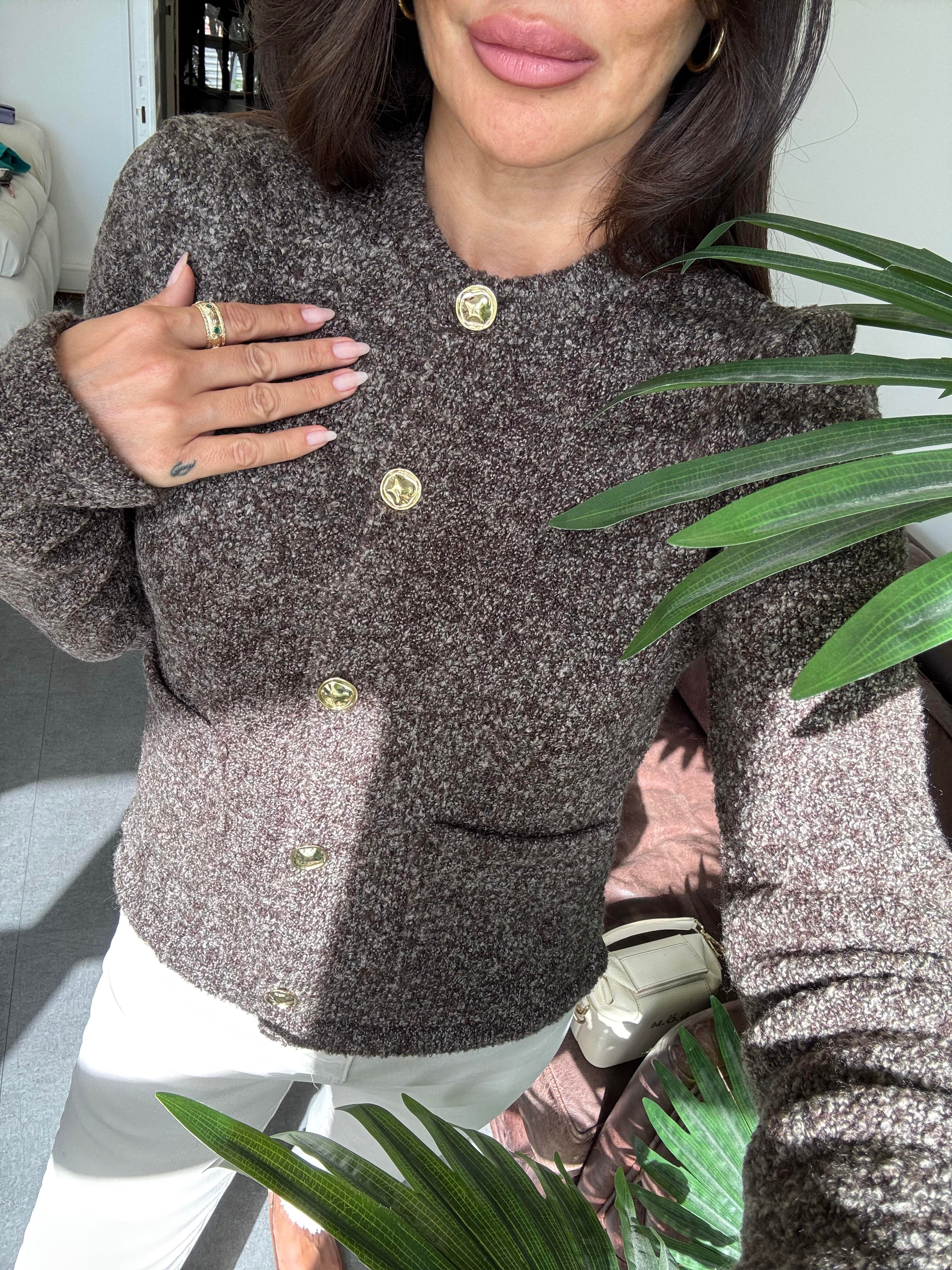 • Ürün Bilgisi: Gold Düğmeli Buklet Hırka