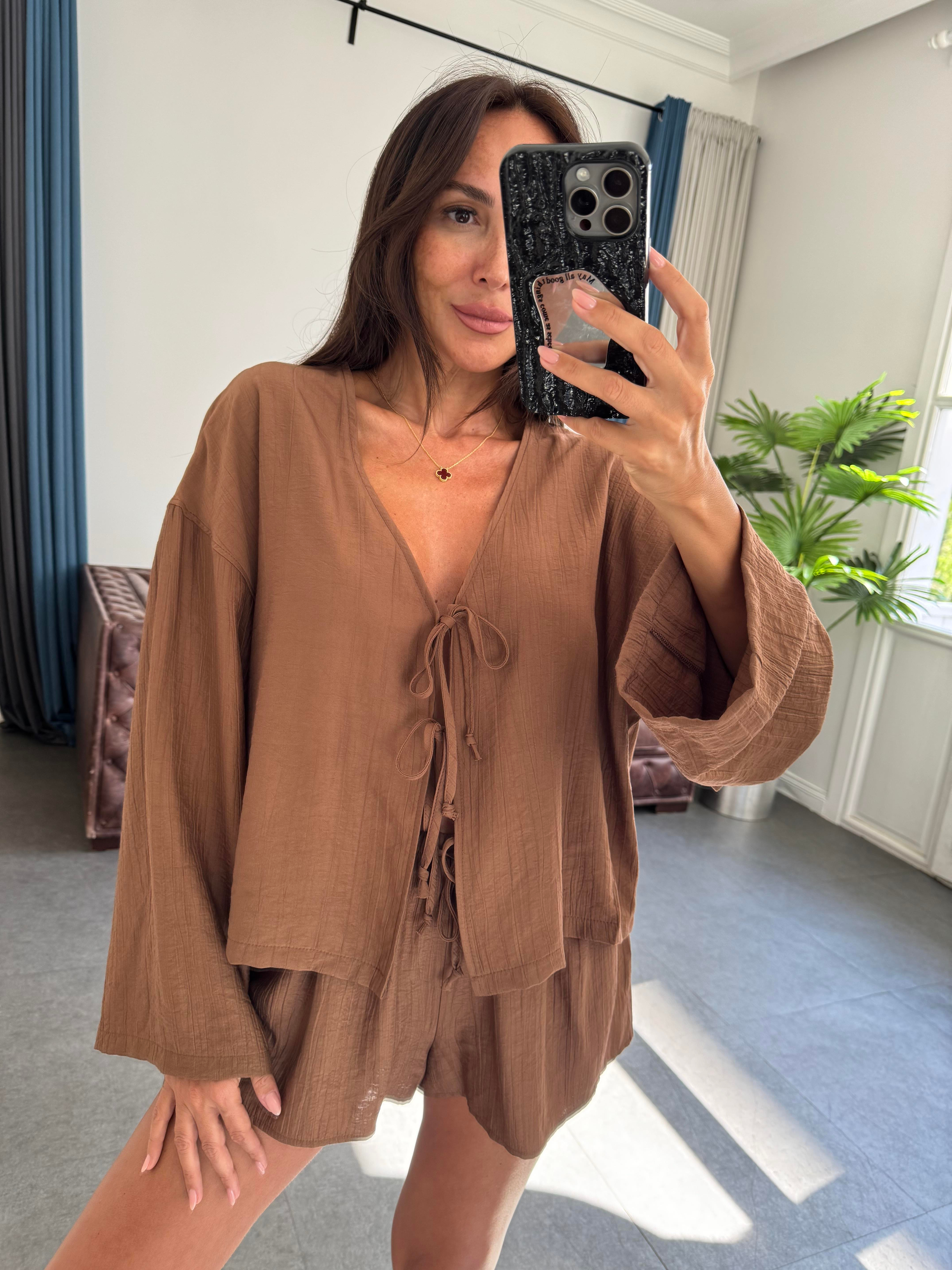• Ürün Bilgisi: Önden Bağlamalı Bluz, Yanları Cepli Şort Takım