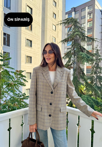Renkli Ekose Üç Düğme Blazer Ceket (CEKT092)