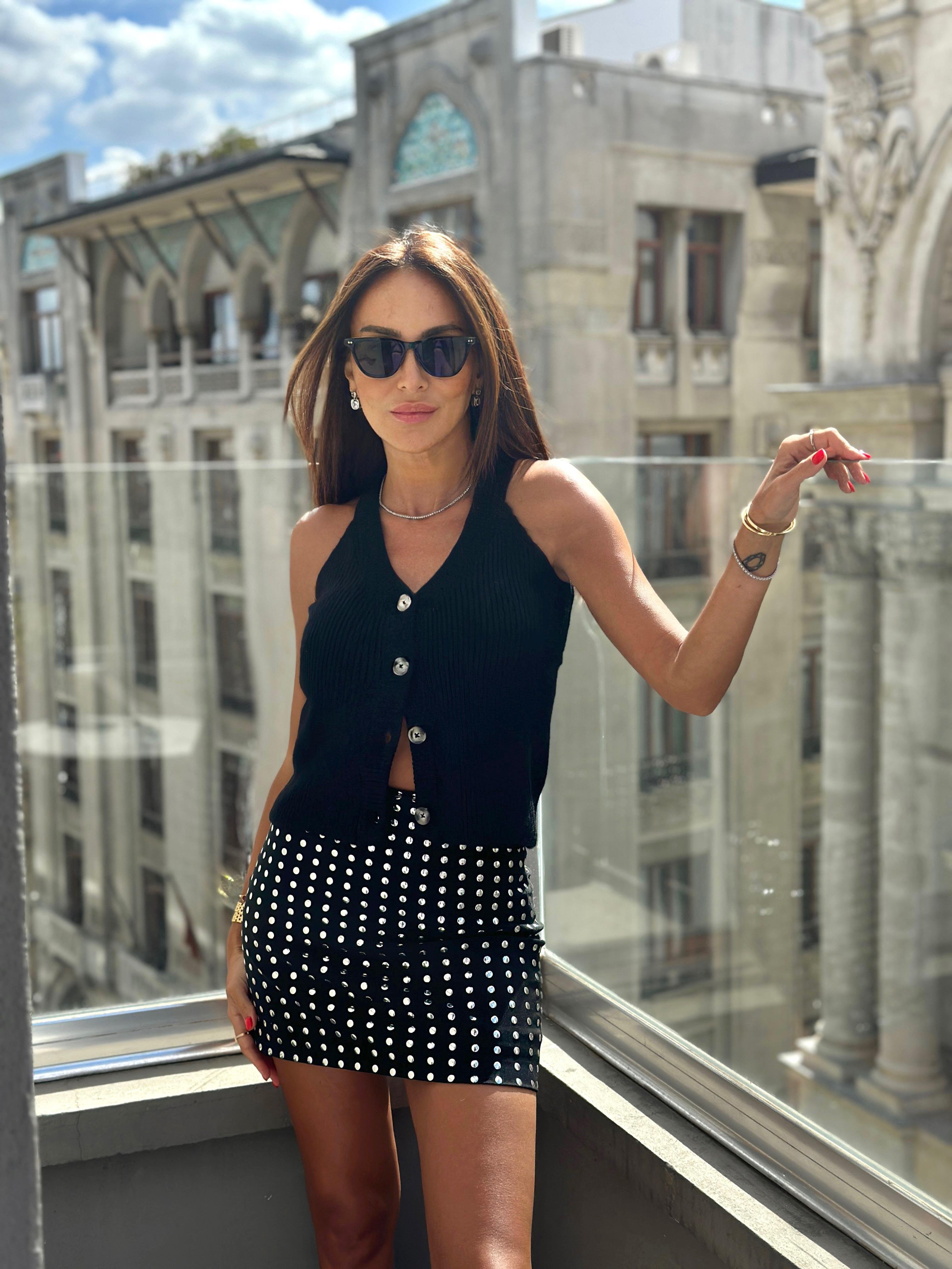 • Model Ölçüleri: Boy: 1.68, Göğüs: 87, Bel: 60, Kalça: 90