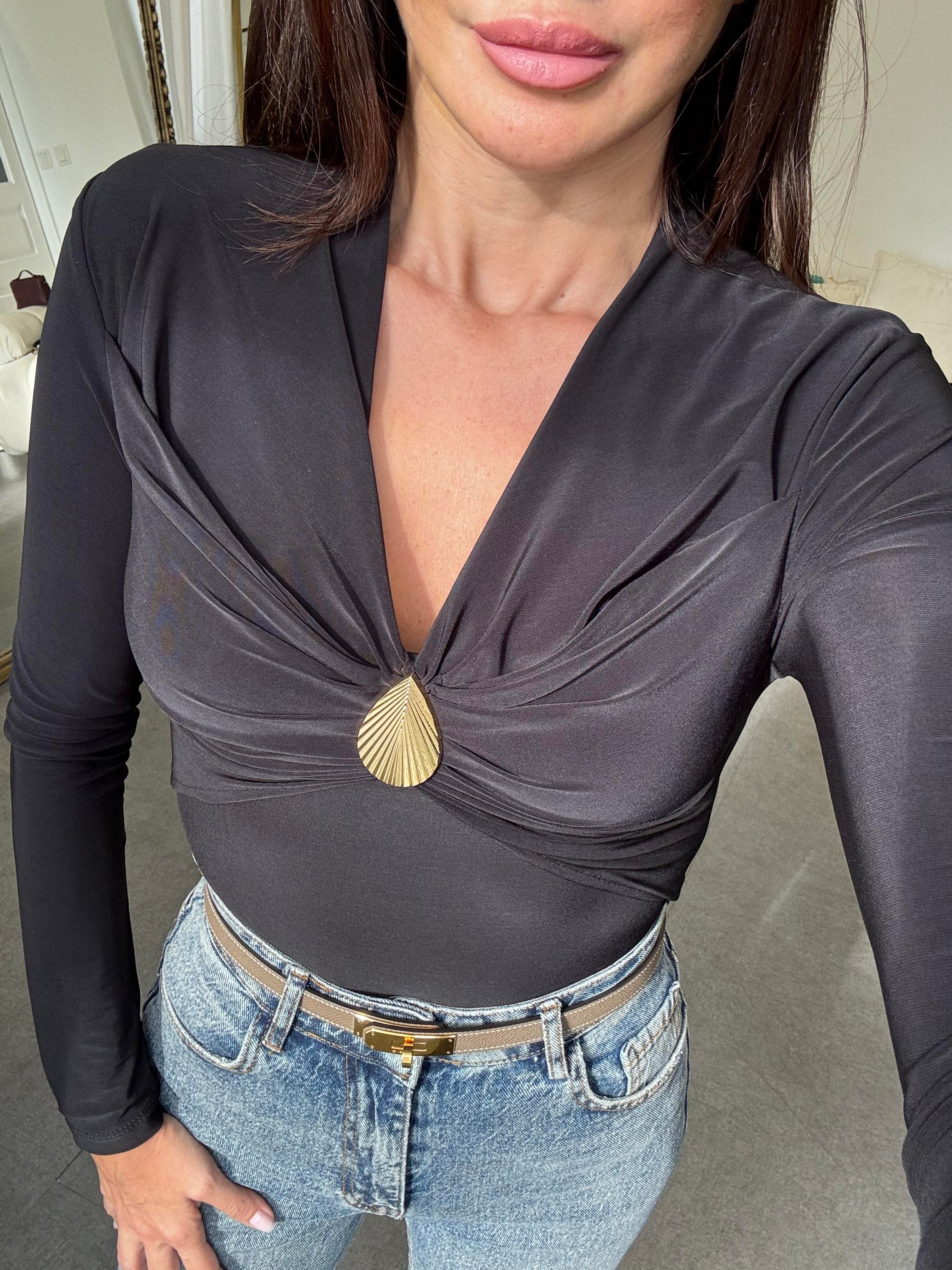 Siyah V Yaka Deniz Kabuklu Bluz (BLUZ232)